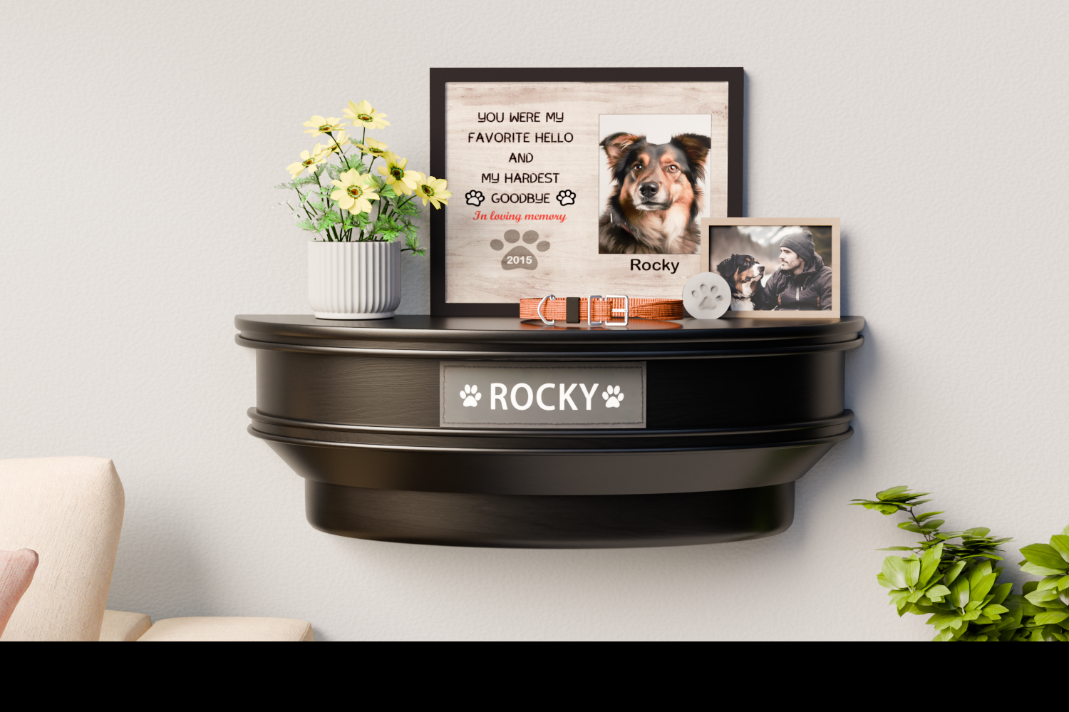 Wall‑Mounted Pet Memorial Shelf with Storage Compartment
